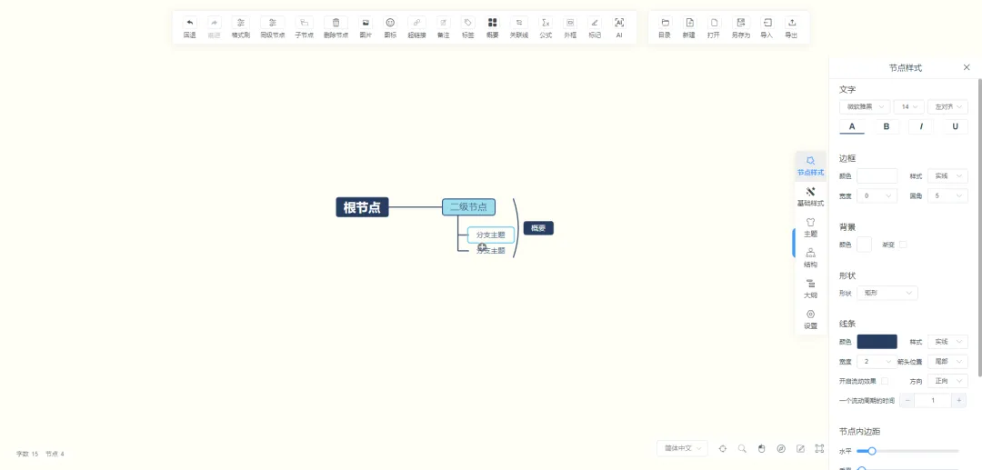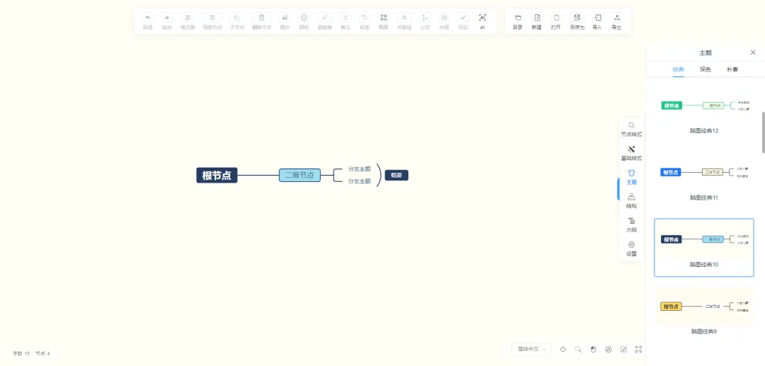 提供多种主题样式与配色方案,美化思维导图。