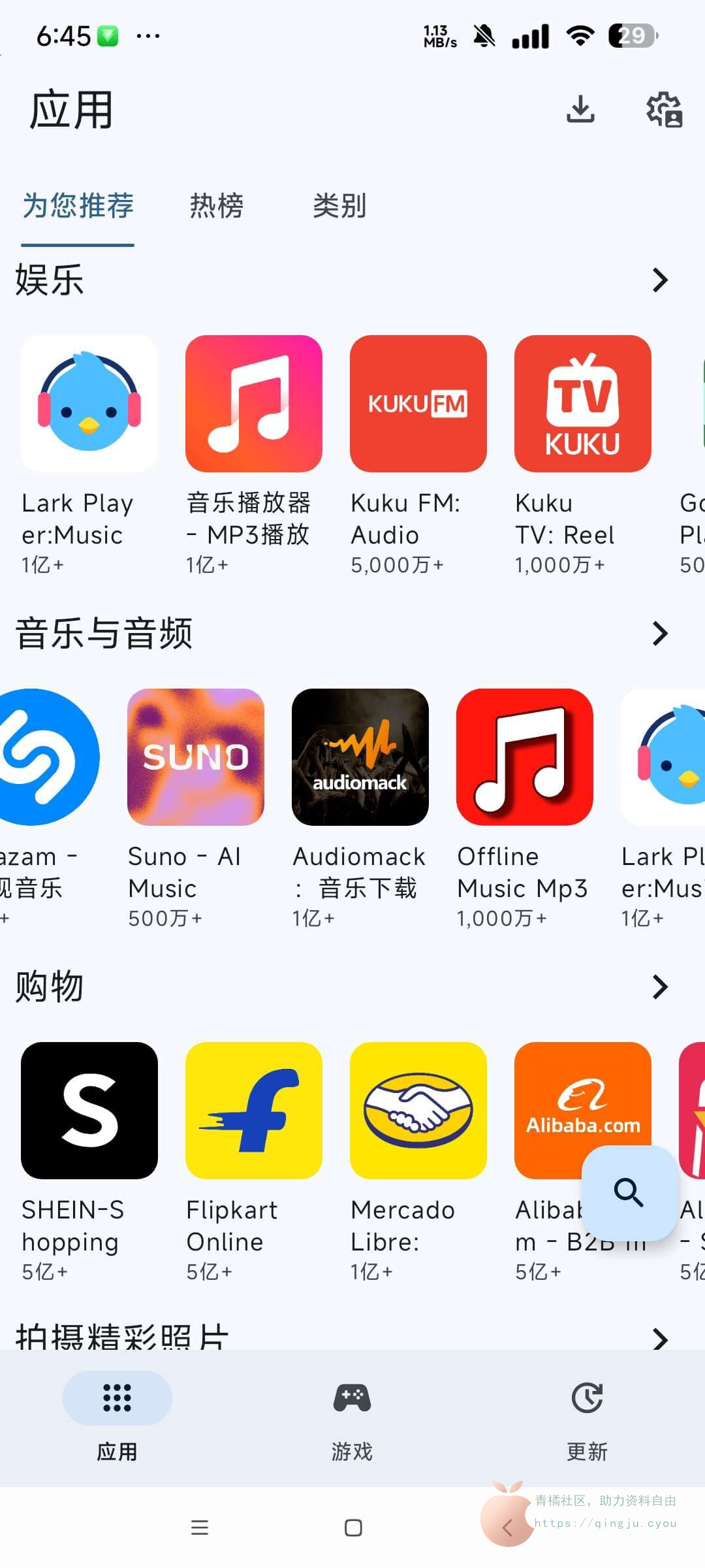 【软件名称】Aurora Store 【软件版本】4.70 【软件大小】7.5mb 【适用平台】安卓 【软件简介】Aurora Store安卓版是一款专门为安卓手机用户打造的开源应用商店,在这个平台用户可以浏览到全面的信息内容。