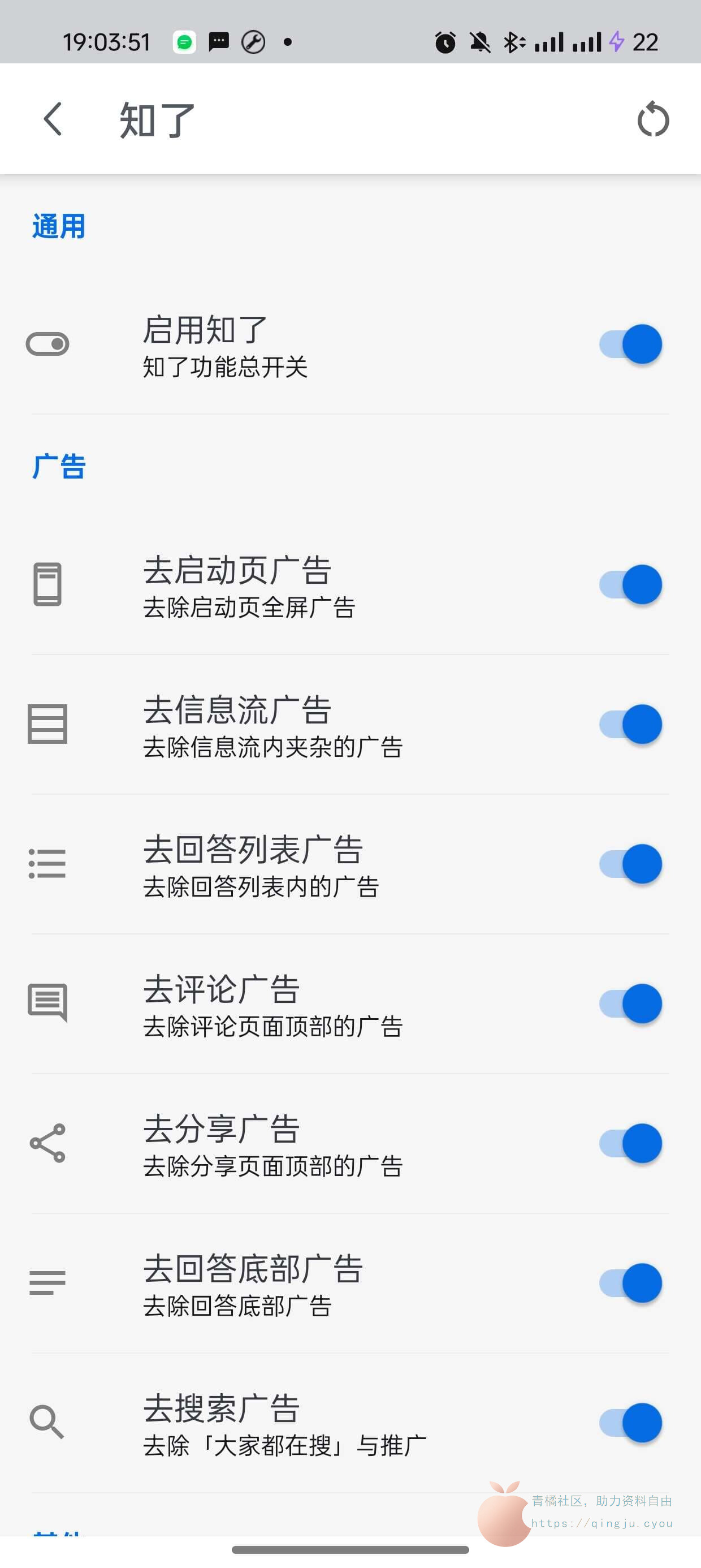 知了 (Zhiliao) 主要特性: - 去启动页广告、去信息流广告、去评论广告、去分享广告、去回答列表广告、去回答底部广告