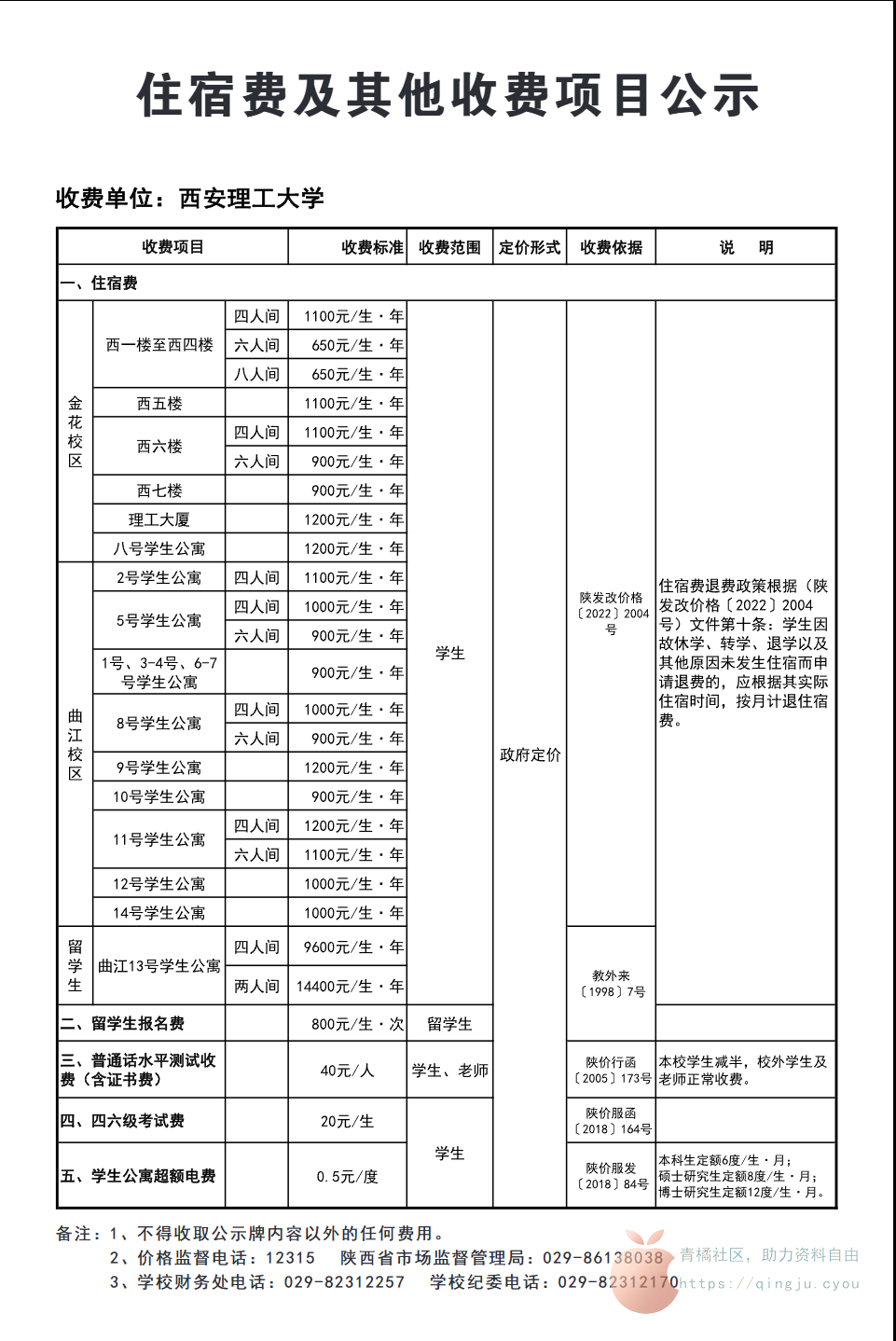 - 限电规定:限电500W,十一号楼限总功率3000W,严禁使用纯电阻类电器(电吹风、电热毯、热水宝等)。