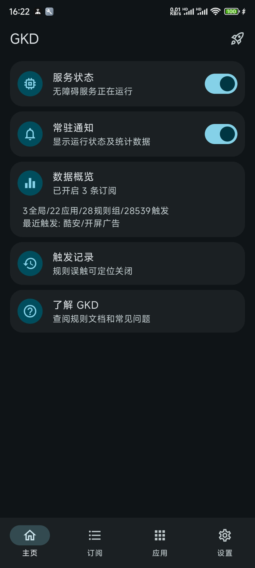 GKD 是一款基于 无障碍 + 高级选择器 + 订阅规则 的自定义屏幕点击 APP,简单来说就是能帮助你跳过安卓应用开屏广告。