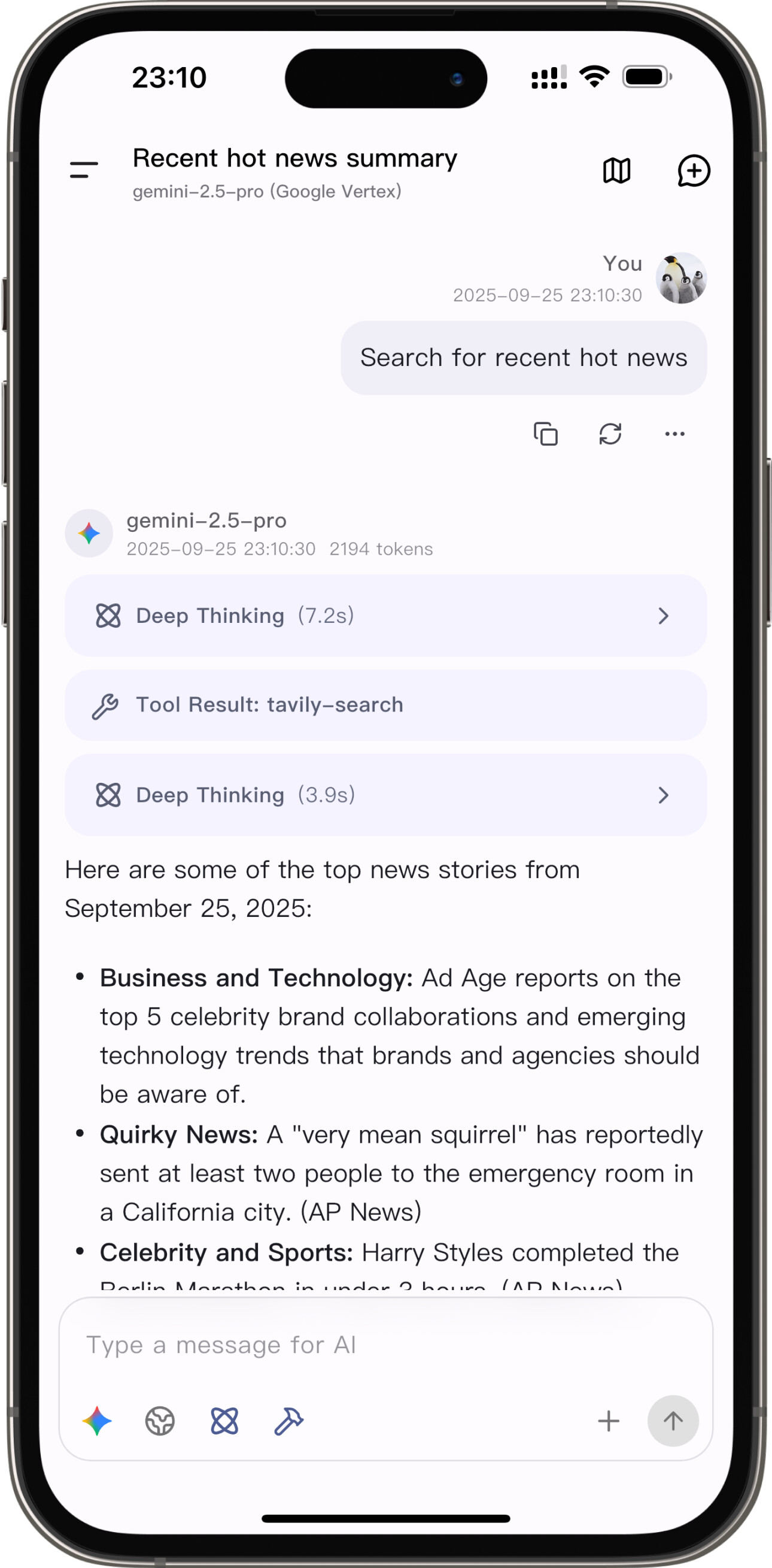 网络搜索 - 集成多个搜索引擎(Exa、Tavily、智谱、LinkUp、Brave、Bing、Metaso、SearXNG、Ollama、Jina)。
