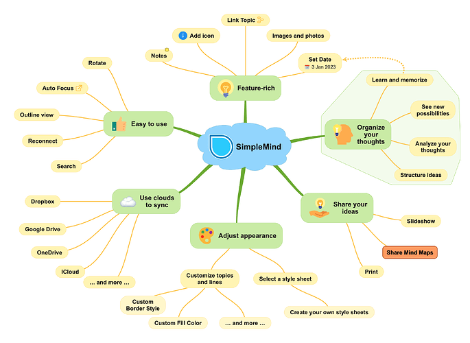 综上所述,SimpleMind Desktop Pro使您能够轻松创建和个性化思维导图,从而组织信息和想法,甚至可以通过手机访问它们。