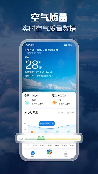 -实时天气更新,提供 24 小时预报及 15 天预测。