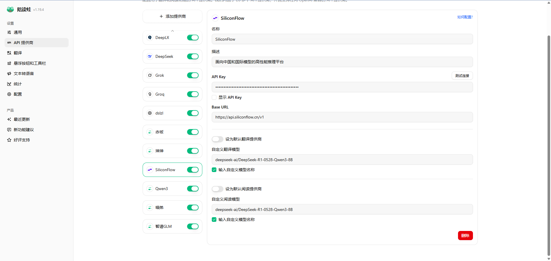 Baseurl:https://api.siliconflow.cn/v1;