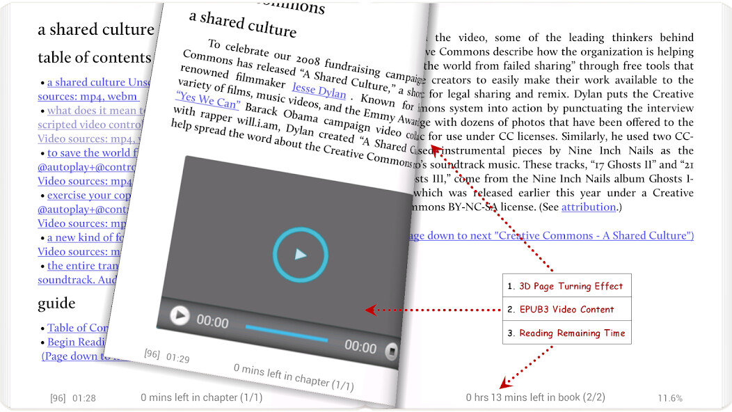 支持 EPUB3 多媒体内容(视频和音频)