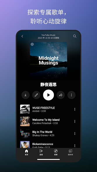 ● 海量精选播放列表,覆盖众多音乐流派和活动场景