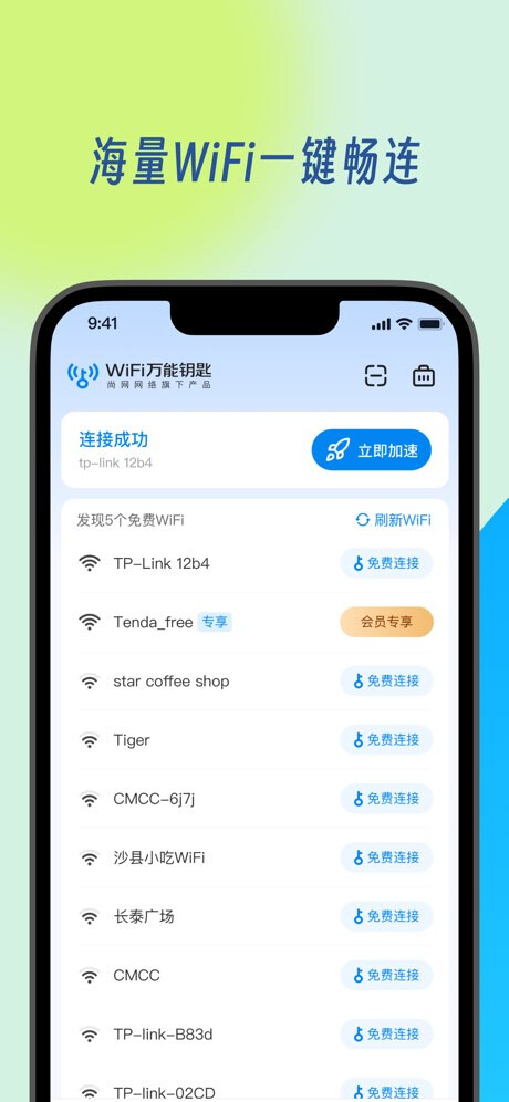 wifi万能钥匙 是一款自动获取周边免费Wi-Fi热点信息并建立连接的wifi网络共享软件。用户无论身处何地,只要打开WiFi万能钥匙,连接附近Wifilm就可以显示连接的密码。也可以把密码分享其他朋友,点击连接即可上网。乐享网分享给大家的支持显密码。界面干净无其他杂乱功能。