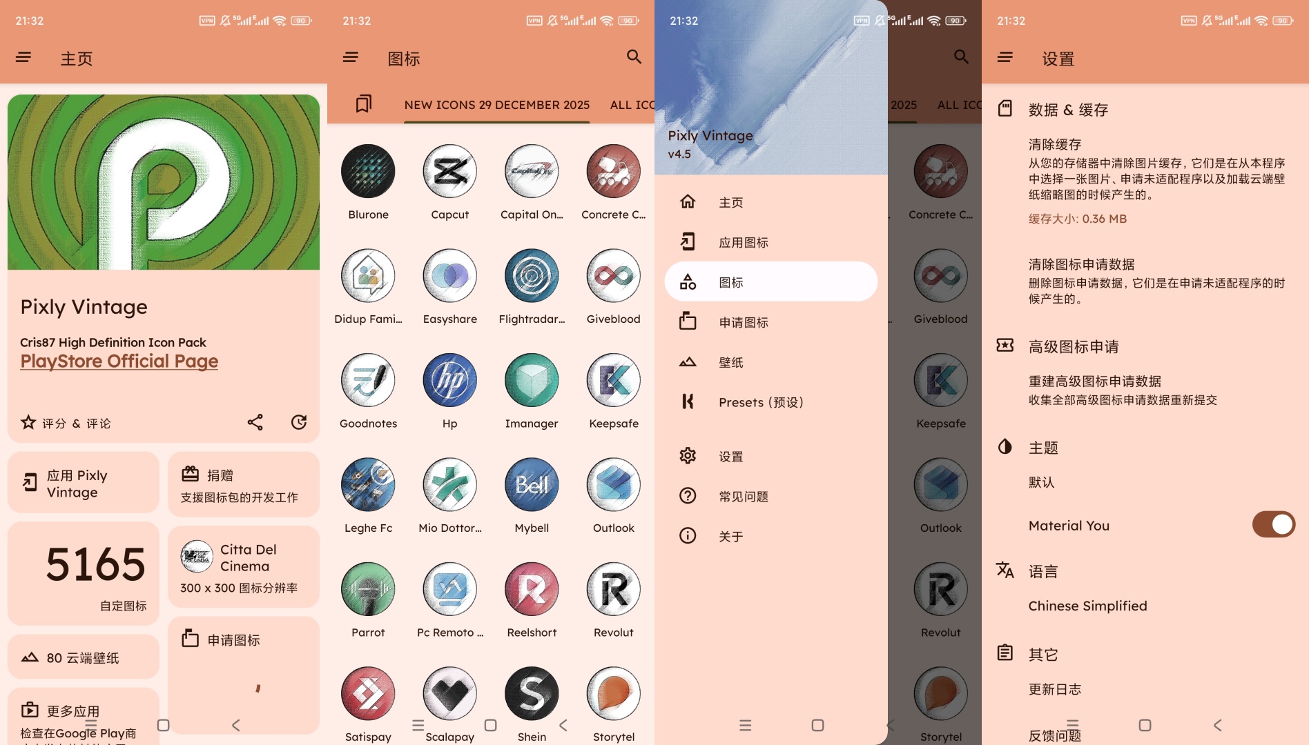 Pixly Vintage – Icon Pack 是一系列与艺术品相似的设计。随着时间推移,过滤器会被应用到每个图标上,创造出全新的样式。虽然灵感来自原始设计,但当设计经过改进并手绘时,独特性依然得以保留。