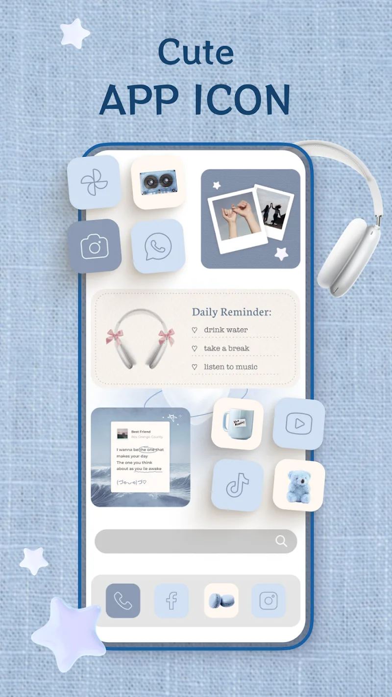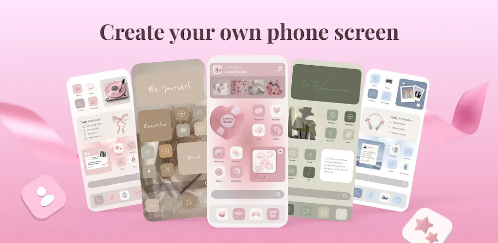 这款应用最棒的功能之一是拥有大量用户可立即使用替代应用图标。该应用提供了大量不同风格的替代应用图标设计库,包括可爱、优雅等。同时,用户还将支持根据偏好风格整合主题或小部件,以同步设备。