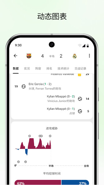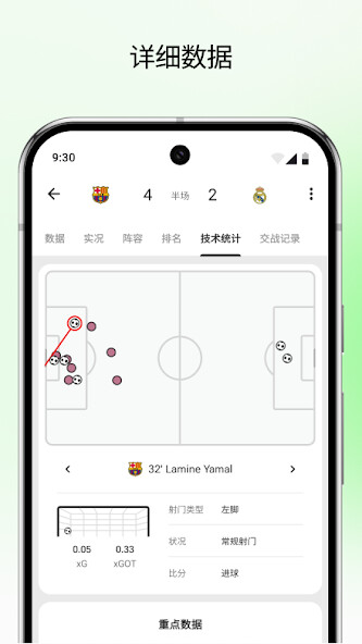 • 详细的比赛数据,包括预期进球(xG)和射门图