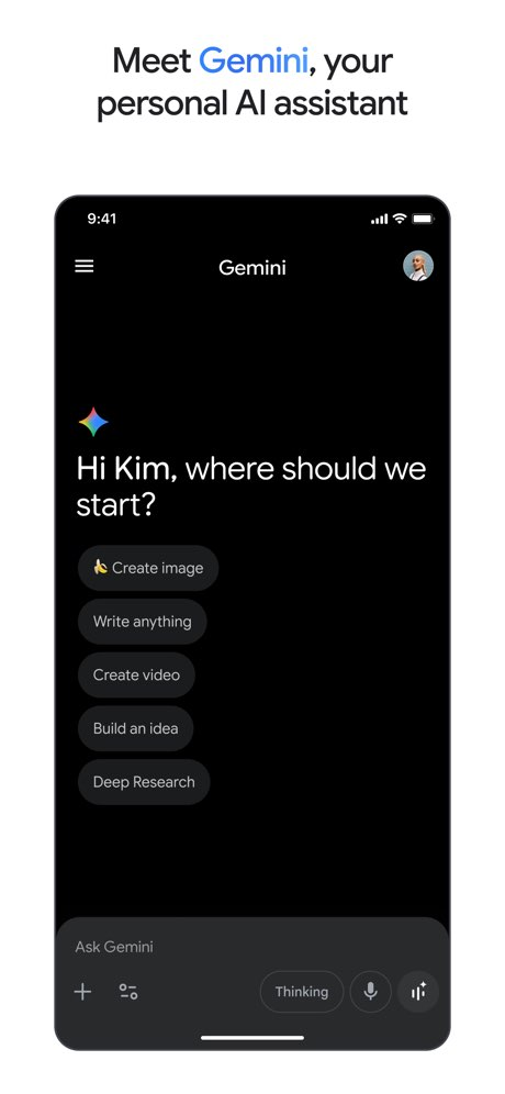 Google Gemini 应用是您专属的主动式强大人工智能助手。
