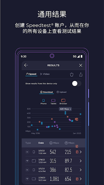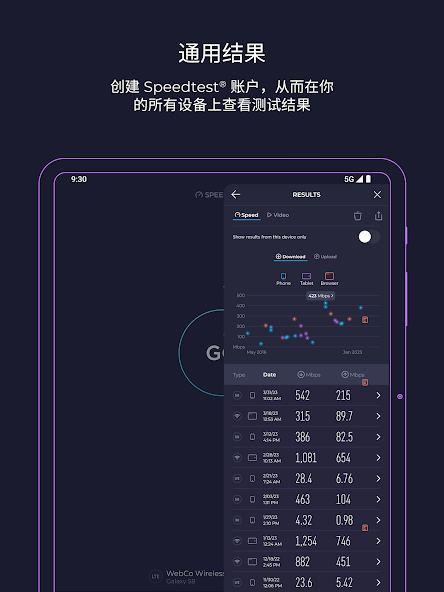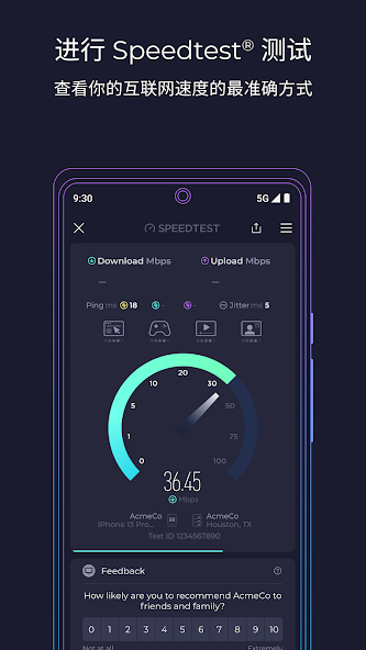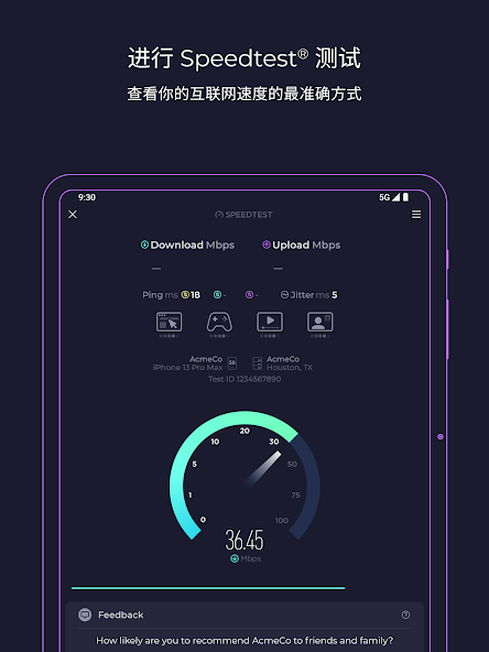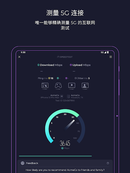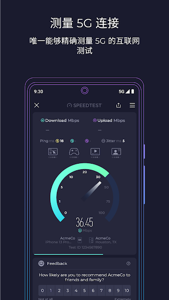 - 唯一能量准 5G 的测速工具