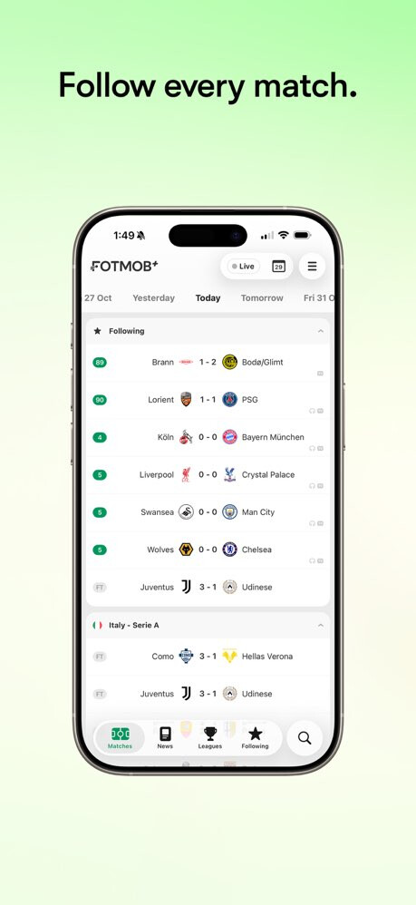 FotMob为你带来全球足球实时比分、详细统计数据和最新新闻。通过个性化提醒和极速的赛事更新,让你随时随地掌握心仪球队和球员的动态。我们的使命很简单:改变世界关注足球的方式。