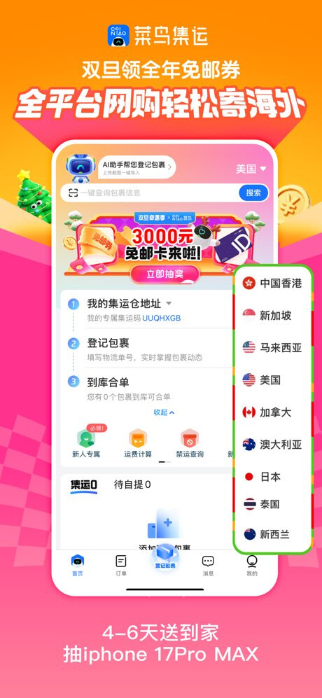 去开屏广告,精简首页,精简底栏(保留首页、消息、我的),精简搜索单号页