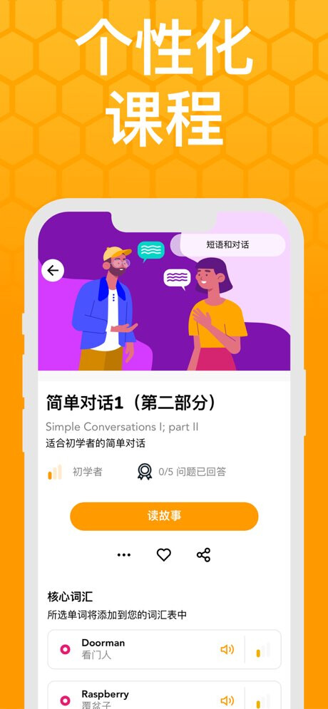 •以自己的节奏学习语言,只选择你想阅读的故事。