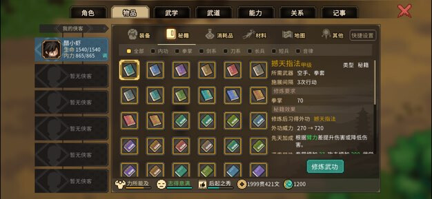 - 百余种武学功法,拳掌刀剑,枪棍音律,内外兼修,皆可自行搭配。成为十字坡剑圣,亦可精通百家所长。
