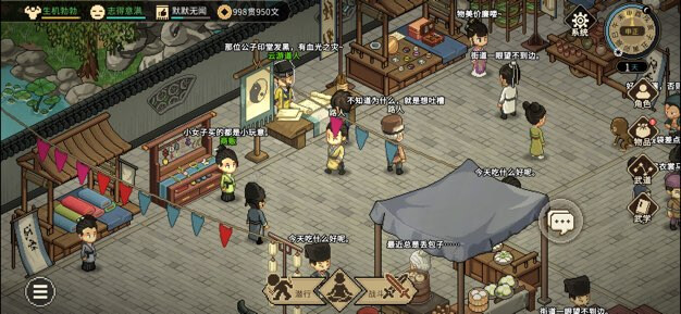 - 充满烟火气息的像素武侠世界。游戏中有着自然流逝的时间,各色NPC都有自己独立的行为AI。