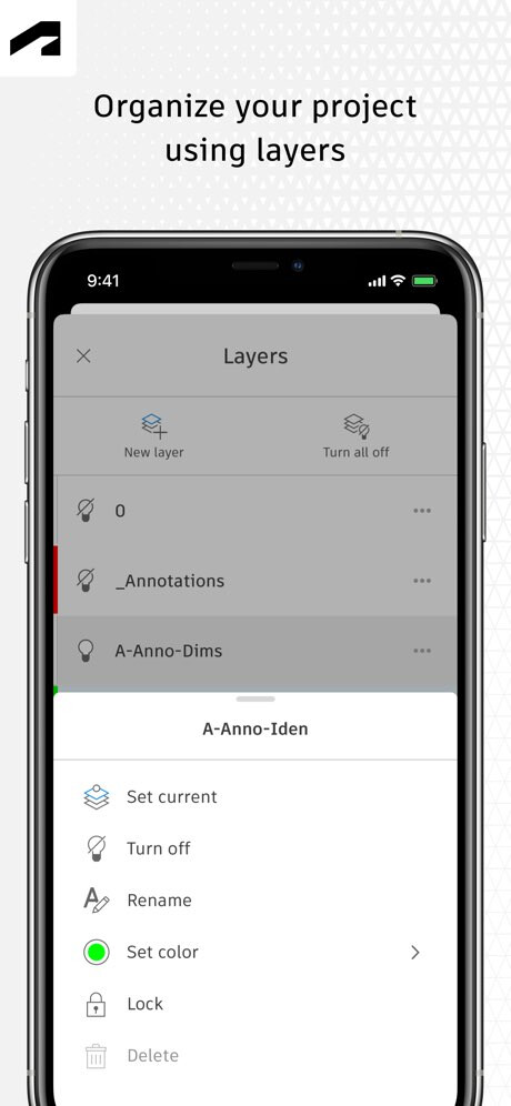 在手机上用熟悉的绘图工具,界面简洁,随时新建、更新 DWG™ 文件。