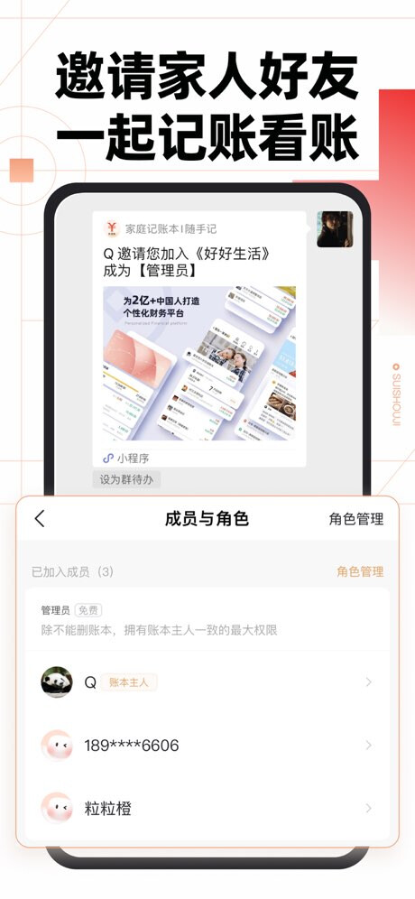 3、多人协同,分工明确 - 多人共用一本账,家庭、团队协作更高效