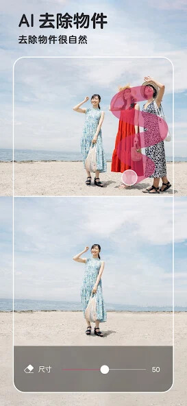 ◇ 别家美颜相机找不到的独家智慧物件移除工具,一键移除好容易!