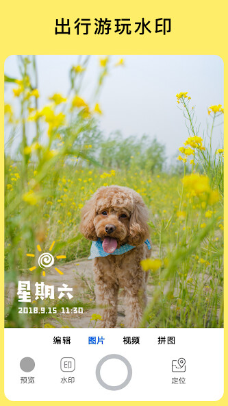 今日水印相机可以在拍照,拍视频时直接加水印。