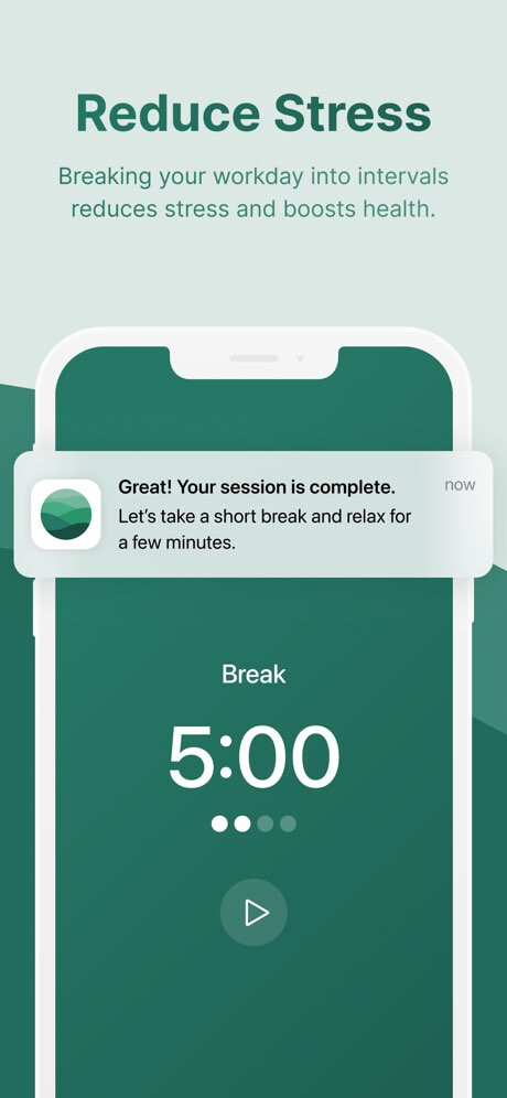 • 番茄计时:工作、休息段自动切换