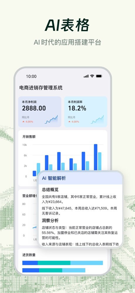 【AI表格】:让每个人成为AI应用“创造者”,无需开发,像做表格一样,轻松搭建业务系统。丰富的500强企业同款模板,开箱即用,客户管理、门店管理、经营分析、招聘管理等业务系统轻松上手,会用表格就会搭。