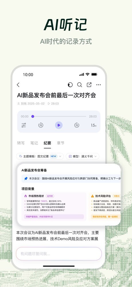 AI时代的记录方式:闪记升级为“AI听记”,30+行业场景模板,支持声纹自动识别发言人。