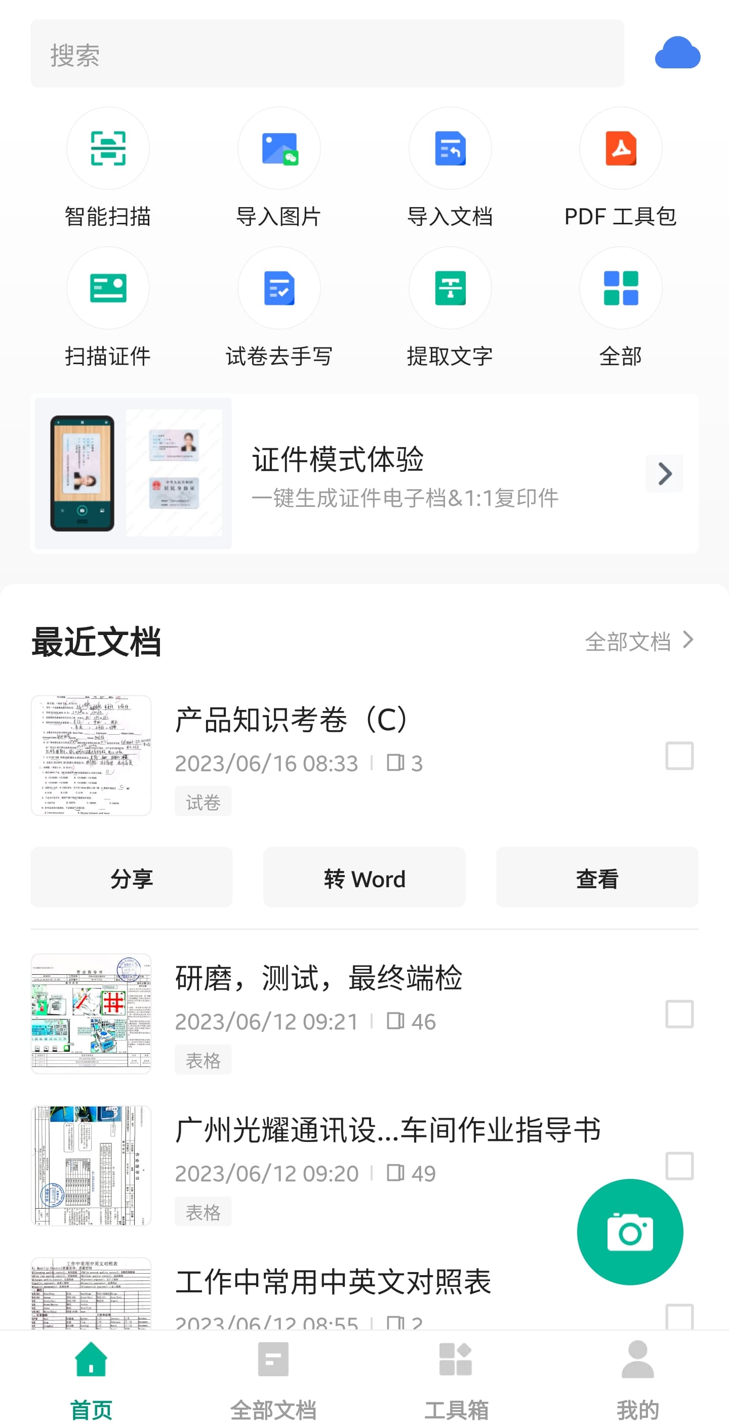 全能扫描王是手机办公必备工具,能把纸质档拍照处理成扫描版文档,效果不错,还能OCR文本识别,在移动端是一款强大的办公软件。