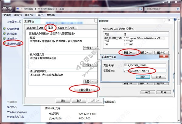 10、安装完成后右键点击计算机》属性》高级系统设置》高级》环境变量,新建变量名:SPLM_LICENSE_SERVER,变量值:27800@计算机名,然后点击“确定”