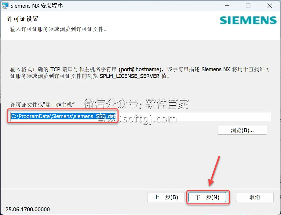 8、许可服务器默认为2800@XXXXXXXXXXX,这里需要修改为:27800@计算机名