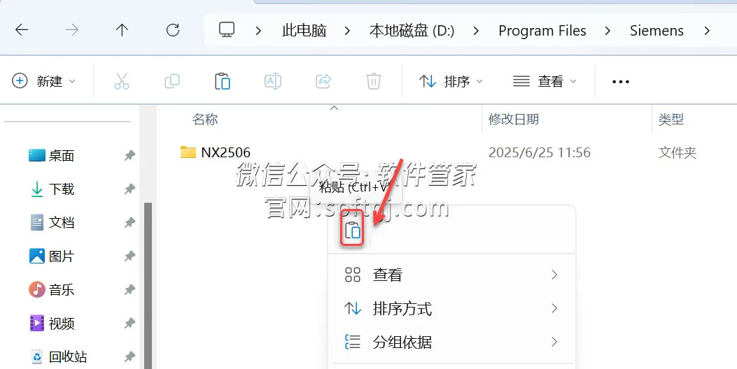 28.鼠标右击【NX2506】文件夹选择【复制】。