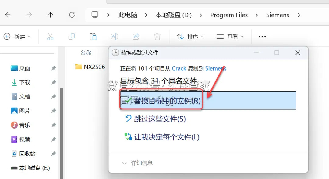 33.点击【替换目标中的文件】。