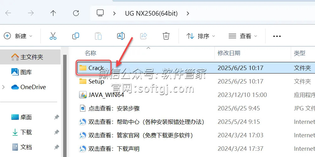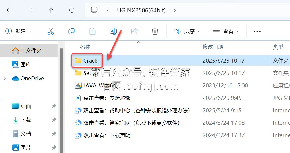27.回到安装包解压后的【UG NX2506(64bit)】文件夹,双击打开【Crack】文件夹。