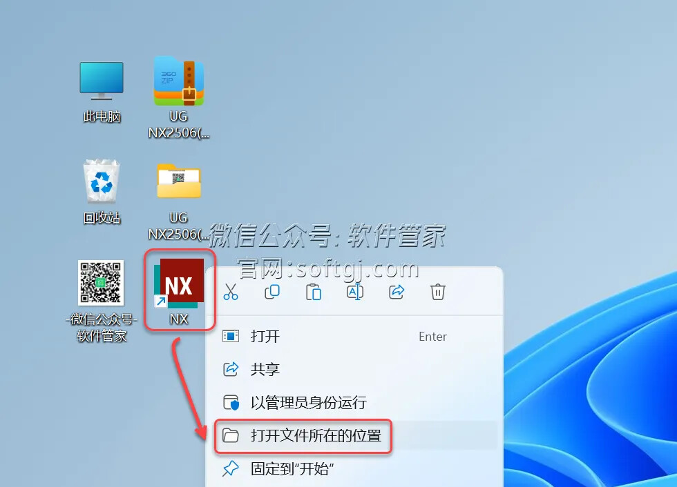 30.鼠标右击桌面【NX】图标选择【打开文件所在的位置】。