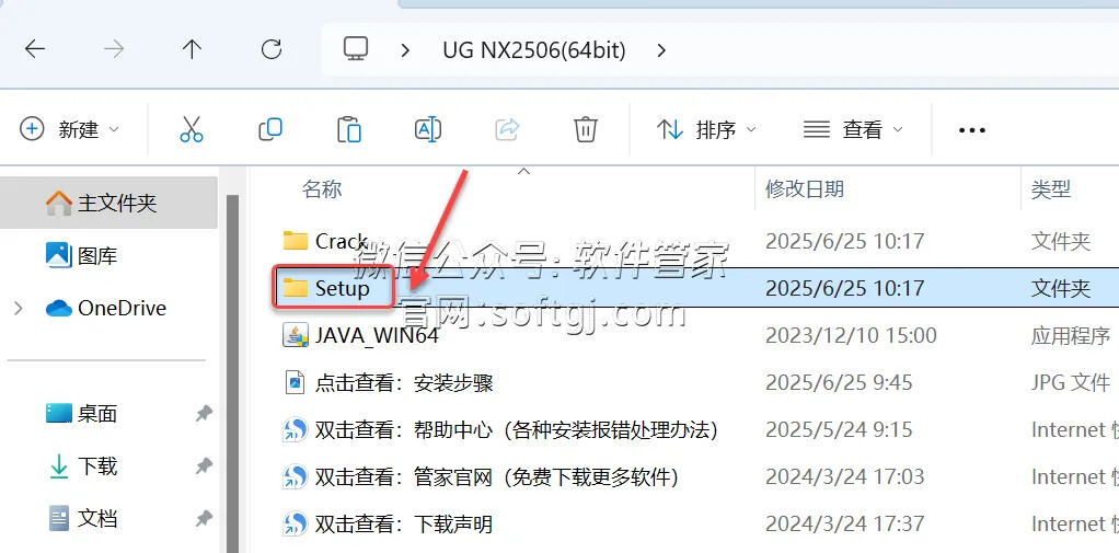 12.打开安装包解压后的【UG NX2506(64bit)】文件夹,双击打开【Setup】文件夹。